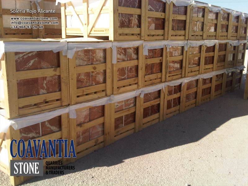 Al introducir el bloque de Rojo Alicante en fábrica podemos obtener tablas de las mismas dimensiones de alto y largo del bloque y del grosor que deseemos. Posteriormente a esta tabla de se le puede dar el acabado que se desee. (Pulido, apomazado, envejecido, etc.). Por normal general el tamaño de las tablas ronda los 4 metros cuadrados.